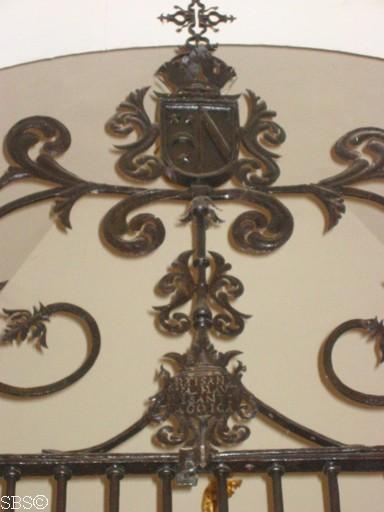 Detalle de la reja con escudo del Marqués de Montenuevo. Inscripción: Caballero del orden de santiago? |