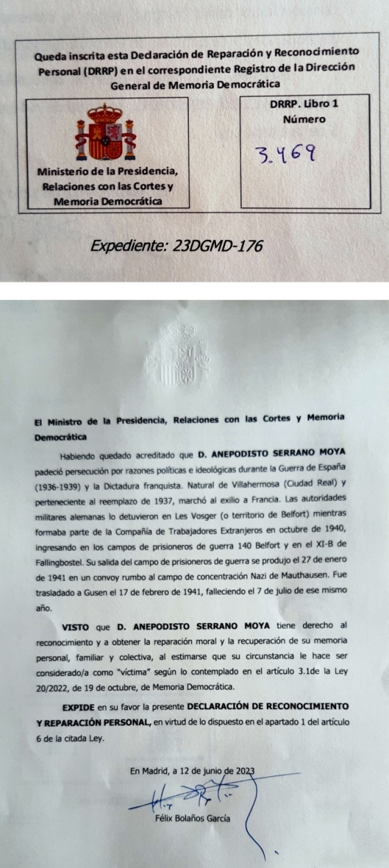 en Registro de la Dirección General de Memoria Democrática