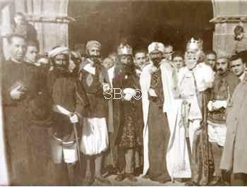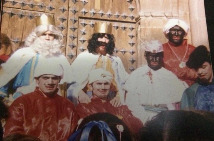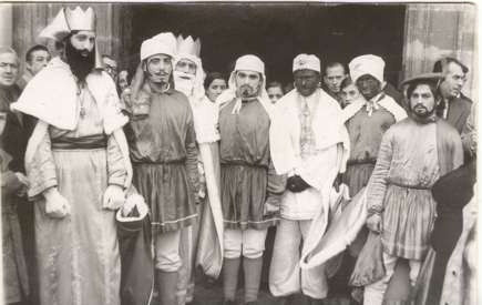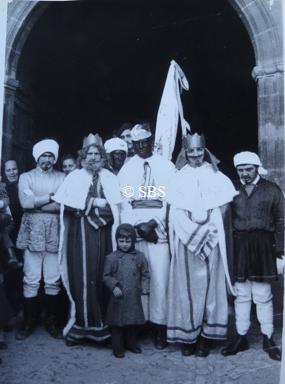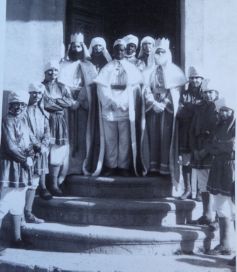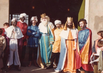 años 70. Reyes Magos en la escalera del ayuntamiento |