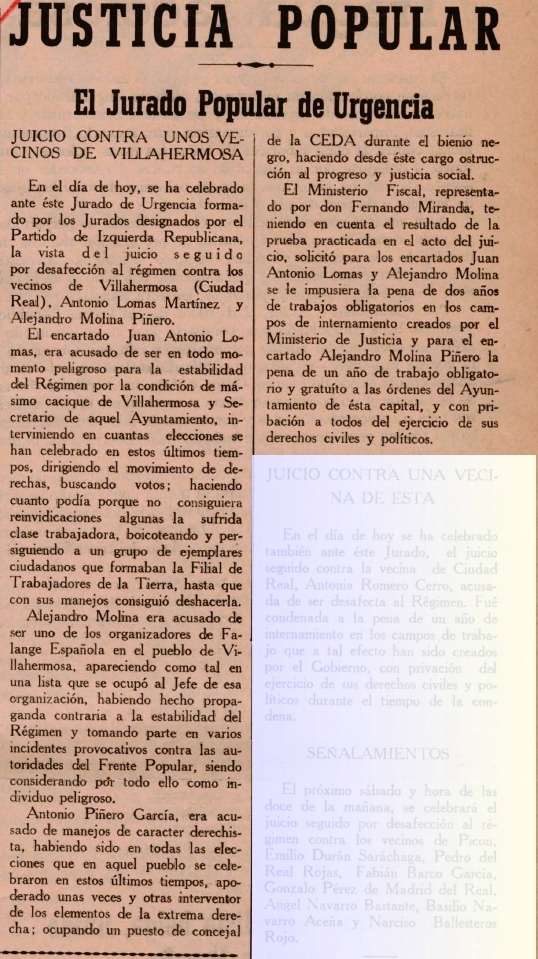 1937. Juicio contra José Antonio Lomas, Antonio Piñero y Alejandro Molina. 5-03-1937