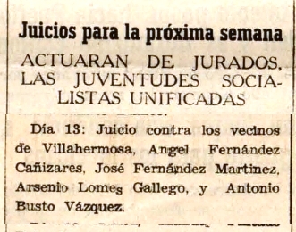 1937. Juicio contra Ángel Fernández, José Fernández, Arsenio Lomas y Antonio Bustos. 7-03-1937