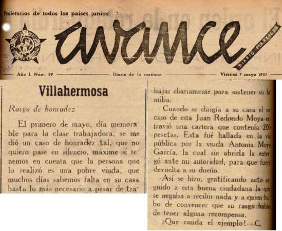 1937.Antonia de Moya García encuentra cartera y la devuelve. 7-05-1937