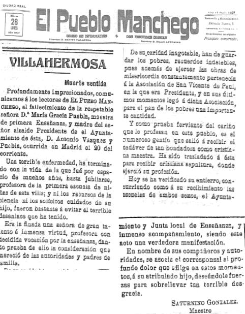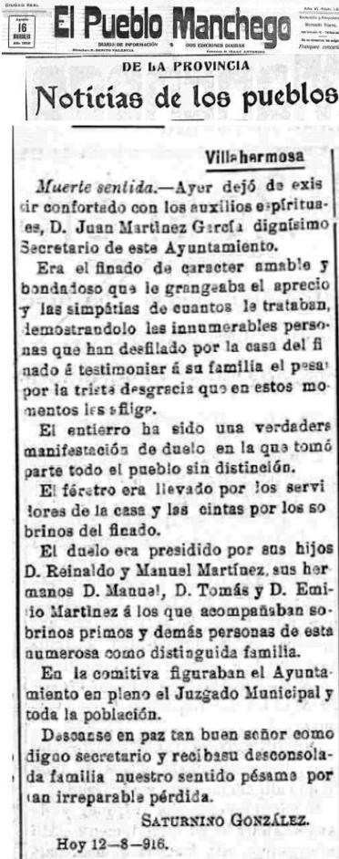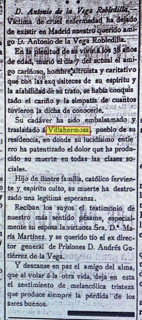 1916 Fallecimiento de don Antonio de la Vega Robredillo
