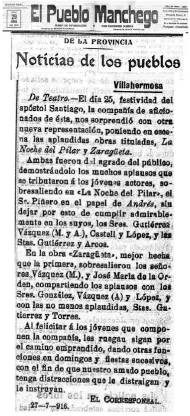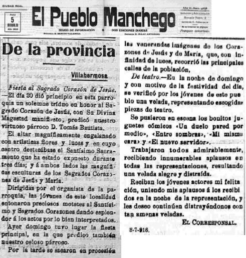 1916 Fiesta del Sagrado Corazón. Función teatral