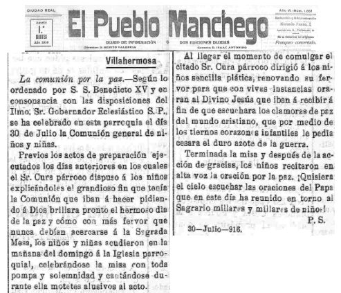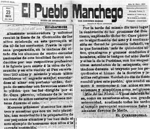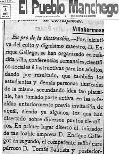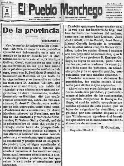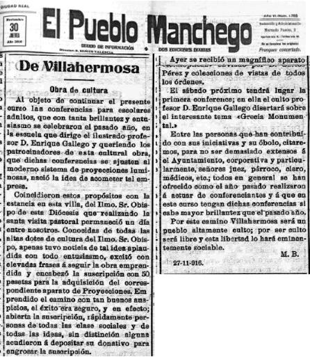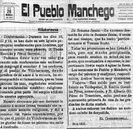 1916 Conferencias científico-religiosas. Semana Santa. Viejeros a Valdepeñas