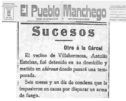 1917 Antolín Esteban condenado por disparar un arma de fuego
