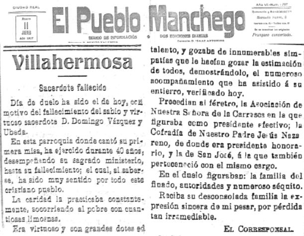 1917 Fallecimiento del sacerdote Don Domingo Vázquez