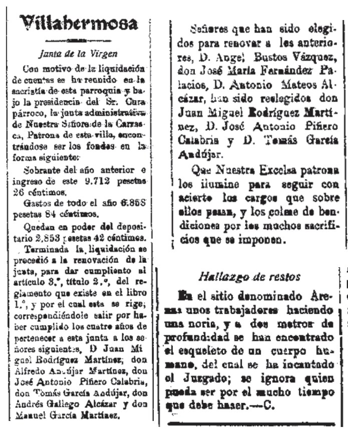 1924 Junta de la Virgen. hallazgo de restos humanos