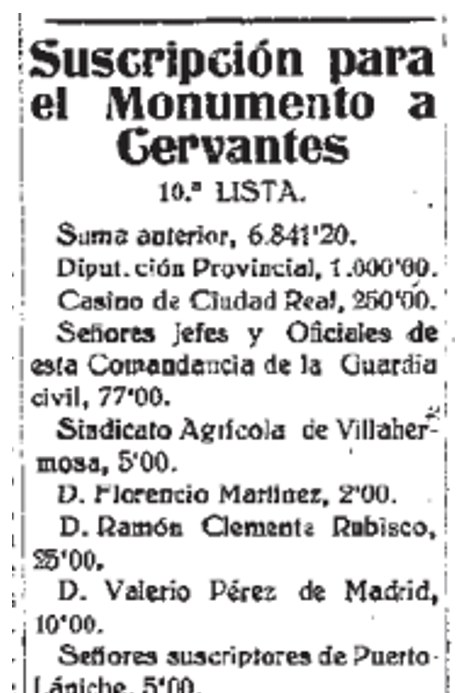 1924 Donativos para monumento a Cervantes