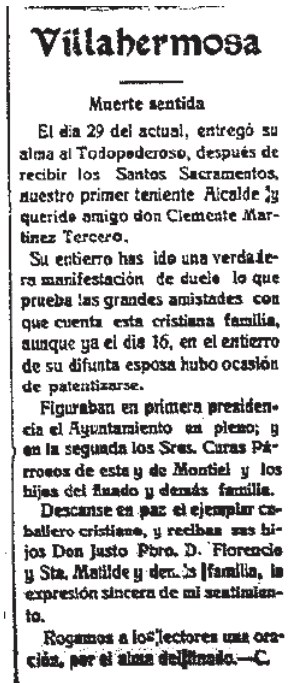 1924 Fallecimiento de Don Clemente Martínez