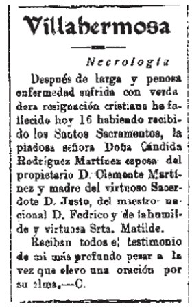 1924 Fallecimiento de Doña Cándida Rodríguez