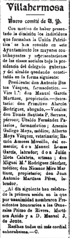1925 Nuevo comité de Unión Patriótica