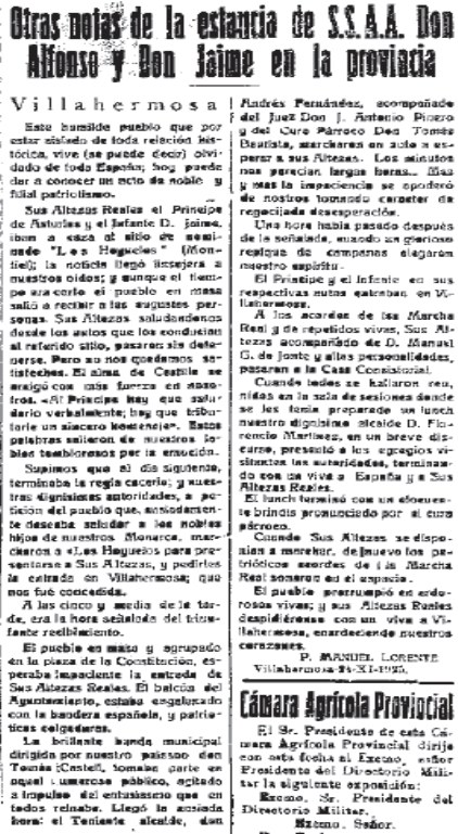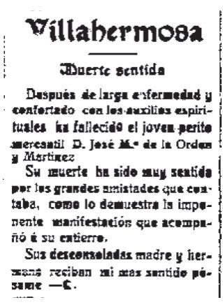 1926 Desarrollo de la noticia. Fallecimiento de don José María De La Orden