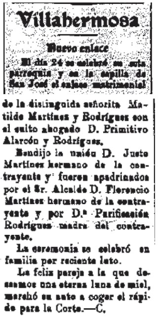 1925 Enlace matrimonial entre Matilde Martínez y Primitivo Alarcón
