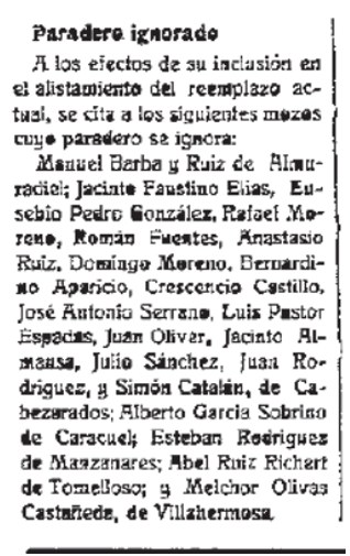 1925 Llamamiento a filas de mozos en paradero desconocico