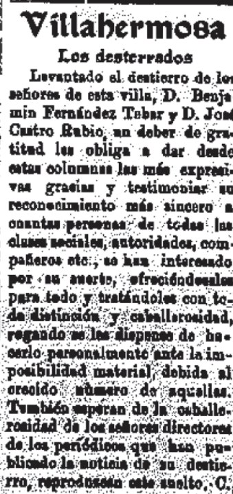 1927 Levantamiento del destierro a Don Benjamín Fernández y a Don José Castro