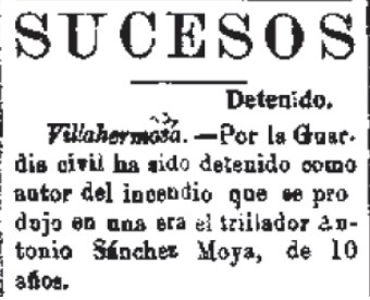 1928 Detenido Antonio Sánchez por incendiar una era