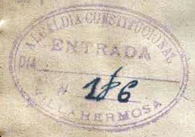 1896. Alcaldía Constitucional de Villahermosa. Entrada. |