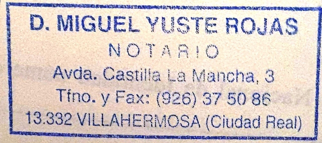 2001. Don Miguel Yuste Rojas, Notario. 13332 Villahermosa Ciudad Real |