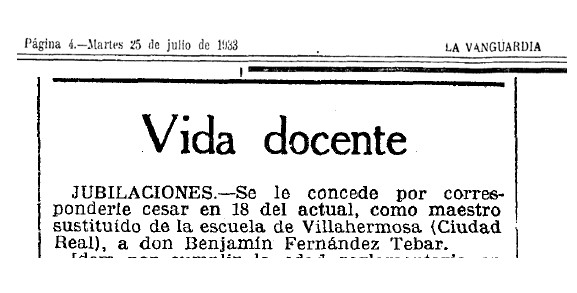 1933 Jubilación del maestro don Benjamín Fernández Tebar