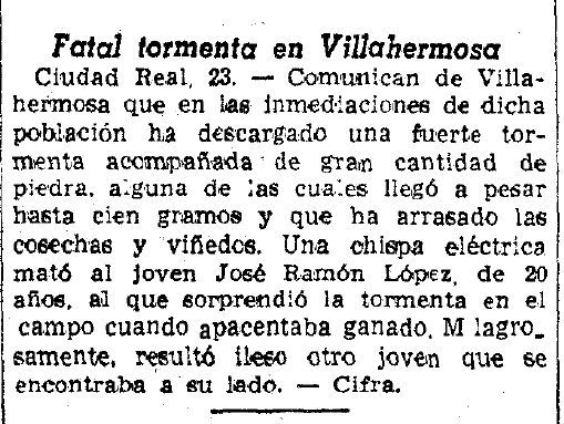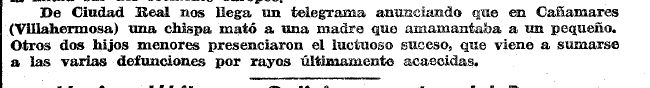 1955 Muerte de una madre mientras amamantaba a su hijo en Cañamares por un rayo