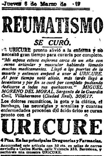 1919 Sargento de la Guardia Civil curado de reumatismo